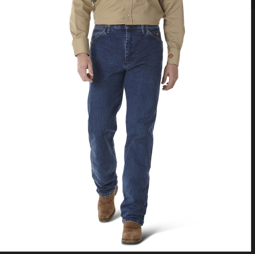 Description: Wrangler® FR products were created to meet the rigorous requirements of the major protection agencies. Wrangler® Original Fit jean. Authentic five pocket styling. Arc-resistant button waistband closures. High quality brass zipper with Nomex FR zipper tape. Flame Resistant pocketing. Reinforced back pockets. Nomex FR thread used in all garment seams. Fits over boots. It also features bright orange ID labels for increased visibility.