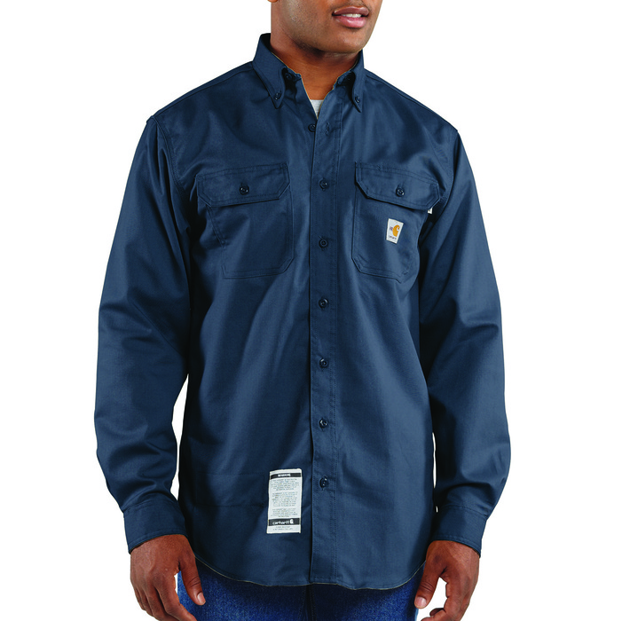 sku: FRS160-DNYCarhartt’s flame-resistant twill shirt with pocket flaps works as hard as you do. Made of 7-ounce, flame-resistant twill, it features two chest pockets with flaps and button closures, flame-resistant melamine buttons and a button-down collar. It also has triple-stitched main seams and a shaped shirt tail. 7-ounce, FR twill: a blend of 88% cotton/12% high-tenacity nylon, Two chest pockets with flaps and button closures.