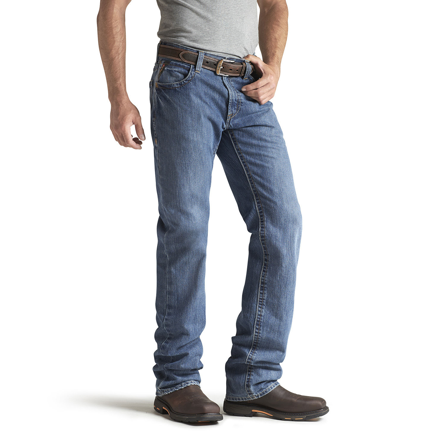 sku: 10014449Ariat Flame Resistant Denim offers protection in extreme environments, with a style that looks great everywhere. Comfortable lower rise. Extra relaxed through waist and hip, loose through thigh M3 delivers a loose-fitting athletic jean that offers plenty of room to move. Premium, ring-spun denim is comfortably soft, yet durable to last in extreme conditions. Straight leg, Medium wash, No-rub comfort inseams, 13 oz. Denim.