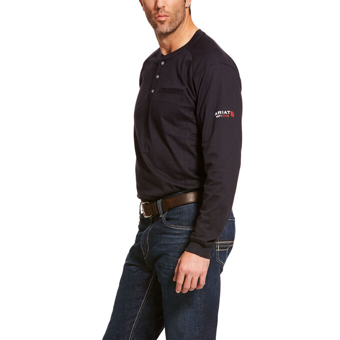 sku: 10022597Ariat® flame resistant knit shirts are constructed with the ultimate comfort, technology and durability in mind. Our FR Air Henley features lightweight 6 oz jersey fabric and a convenient Velcro® closure chest pocket.