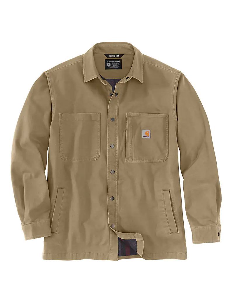 RUGGED FLEX RELAXED FIT CANVAS FLEECE-FRONT SHIRT JAC- DKH